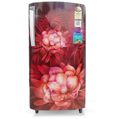 185 L Direct Cool Refrigerator | Single Door | 2 Star BEE | Fresh Shield | Floral Red Glass Design